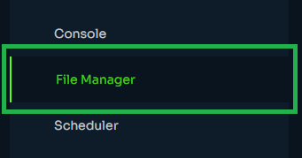 3. Now that you have your Mods folder open, go to your dashboard’s file manager via the navigation interface and click it.