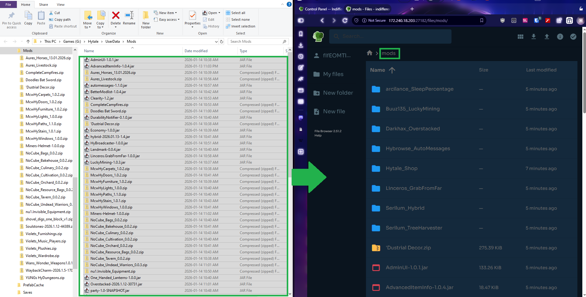 Then drag and drop files from your Hytale Mods folder (or your Downloads folder) into your server’s Mods folder. Then move on to the last step.